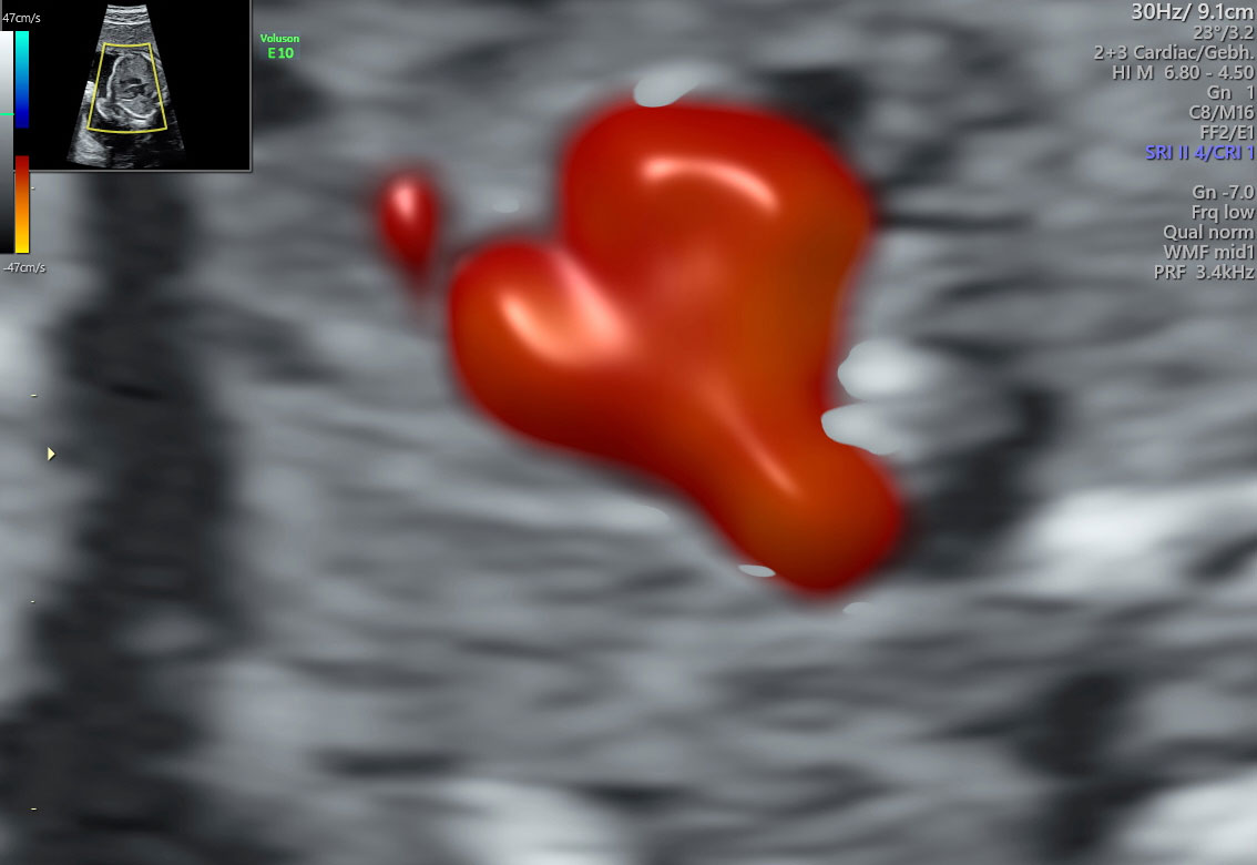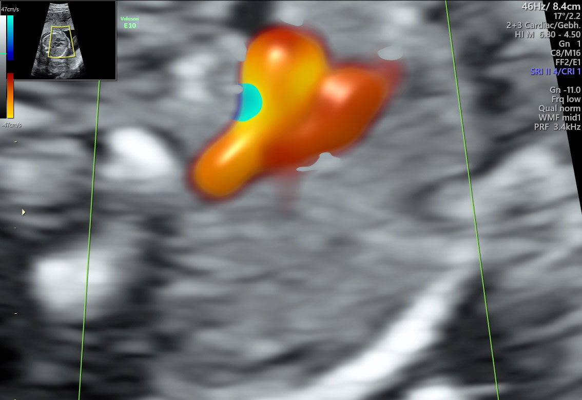 Sie kommt vielfältig zum Einsatz. Im Prinzip wird die Bewegung der roten Blutkörperchen über eine Phasenverschiebung analysiert. Damit können zum Beispiel die Versorgung des Feten abgeschätzt, das fetale Echo verfeinert werden.