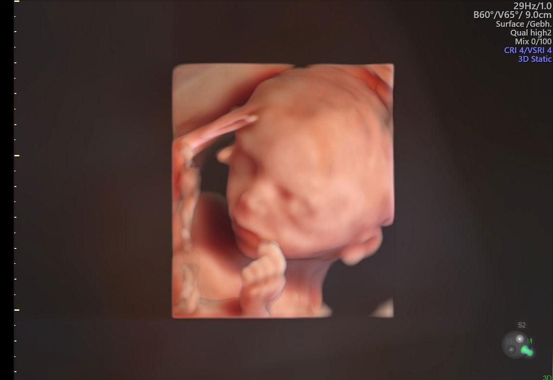Am Ende der Embryonalphase, ca. 13.SSW kann schon sehr viel über eine voraussichtlich gesunde Entwicklung des Nachwuchses festgestellt werden. Das gibt ein gutes Gefühl für die weiteren Schwangerschaftswochen. Diese Untersuchung wird kombiniert mit der Darstellung der sogenannten nuchal translucecy, welche schon allein das Risiko für bestimmte Krankheiten des Feten wie Herzfehler und Chromosomenstörungen deutlich reduziert.