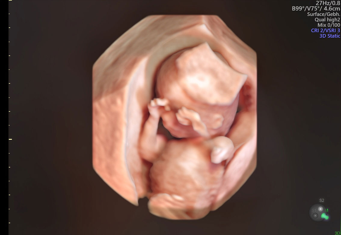 Am Ende der Embryonalphase, ca. 13.SSW kann schon sehr viel über eine voraussichtlich gesunde Entwicklung des Nachwuchses festgestellt werden. Das gibt ein gutes Gefühl für die weiteren Schwangerschaftswochen. Diese Untersuchung wird kombiniert mit der Darstellung der sogenannten nuchal translucecy, welche schon allein das Risiko für bestimmte Krankheiten des Feten wie Herzfehler und Chromosomenstörungen deutlich reduziert.